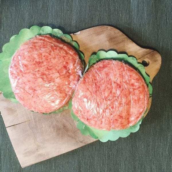 Ambachtelijk bereide hamburgers uit het kruidige fijngemalen vlees van scharrelvarkens.